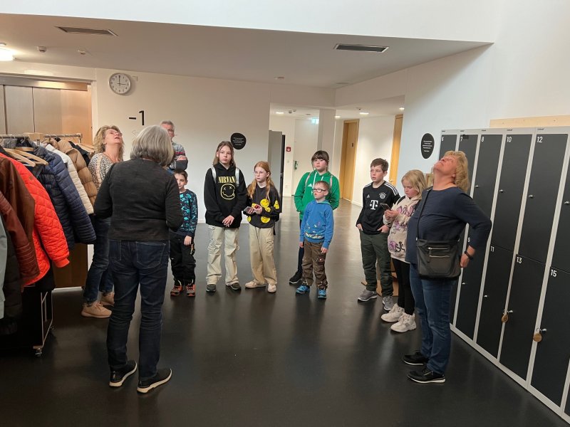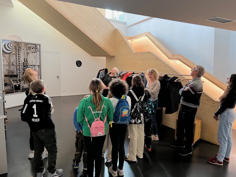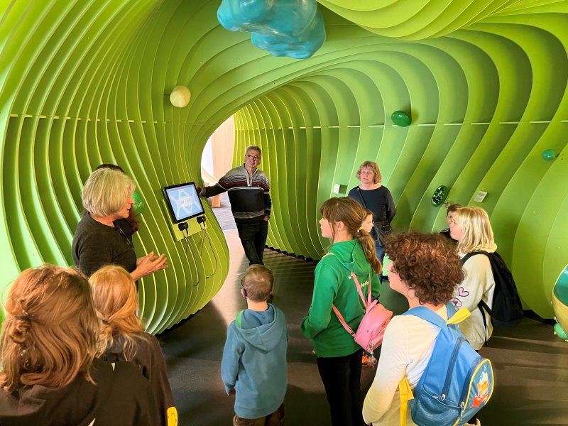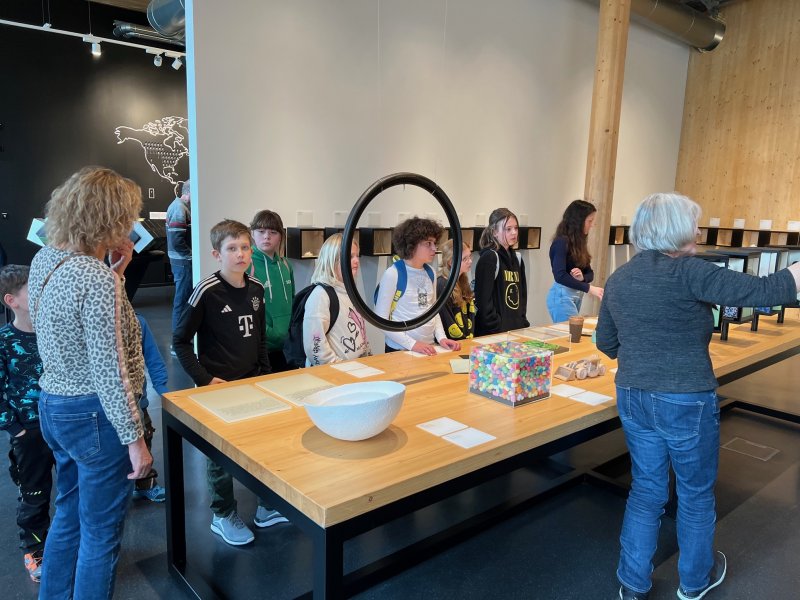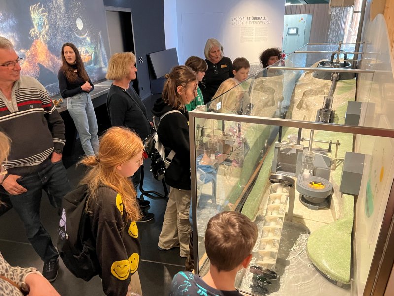 Führung erfuhren die Kinder viel über die Energie die wir täglich verbrauchen. An einem Zeitstrahl wurde erläutert wie lange die Entstehung von Erdöl, Erdgas und Kohle gedauert hat und dass dies alles letztendlich von Pflanzen stammt. Der Mensch „verheizt“ jetzt in kürzester Zeit dies alles wieder. Wenn seit der Entstehung der Erde ein Tag vergangen ist, dann würde der Mensch erst seit einer Minute existieren. Es ist deshalb wichtig, die Ressourcen zu schonen. Wie dies gelingen kann, konnten die Kinder an zahlreichen Versuchen mit Wasser- und Windkraft, sowie Sonnen- und Bioenergie selber „begreifen“. Aber auch auf das Thema Abfall wurde eingegangen. So wurde ein großer Haufen Plastikmüll gezeigt, er stammte von einer einzelnen Familie und hat sich innerhalb von nur einem halben Jahr angesammelt.