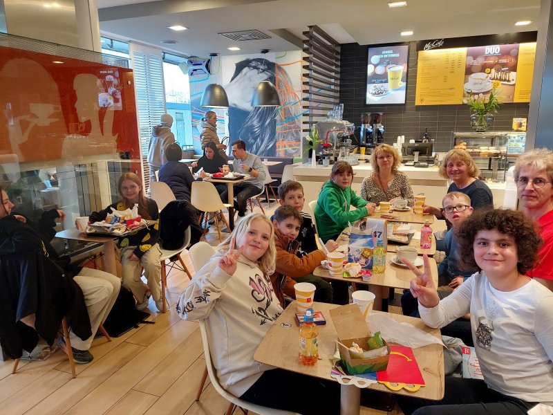 Da die Führung und das Ausprobieren der Versuche hungrig machen, wurde vor der Heimreise noch ein Zwischenstopp in einem Schnellrestaurant eingelegt. Die Kinder und Betreuer wurden mit einer kleinen Mahlzeit und einem Eis verköstigt.