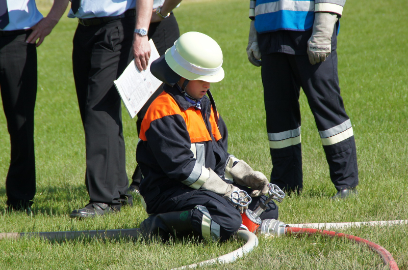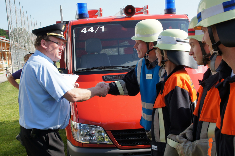 Kreisbrandinspektor Dionys Härtl kam mit KBM Max Schraufnagel und dem Kommandanten aus Prunn, Christian Greiner, als Schiedsrichterteam nach Aufhausen um die Prüfung abzunehmen. Beide Gruppen arbeiteten sauber und im vorgegebenen Zeitfenster. Nur ein paar kleine Flüchtigkeitsfehler bei den Knoten haben sich eingeschlichen. Ansonsten waren beide Gruppen fehlerfrei.