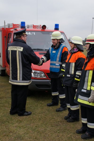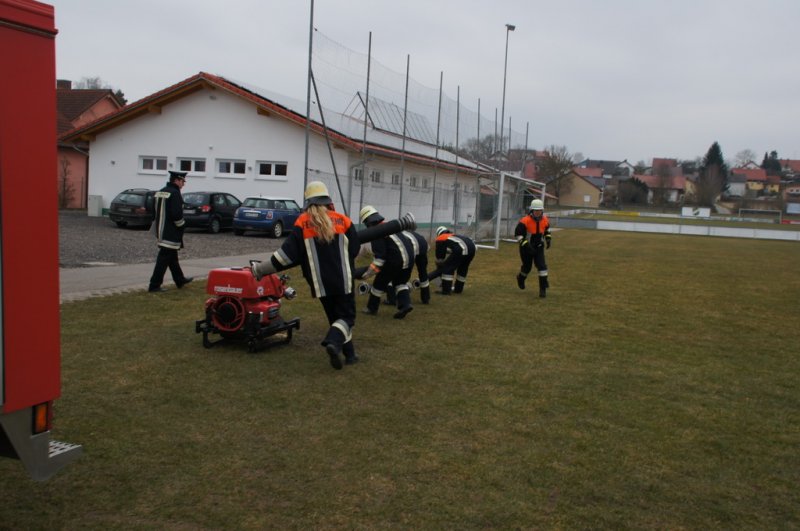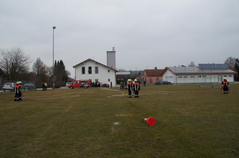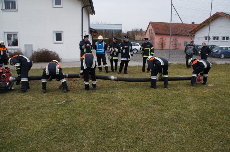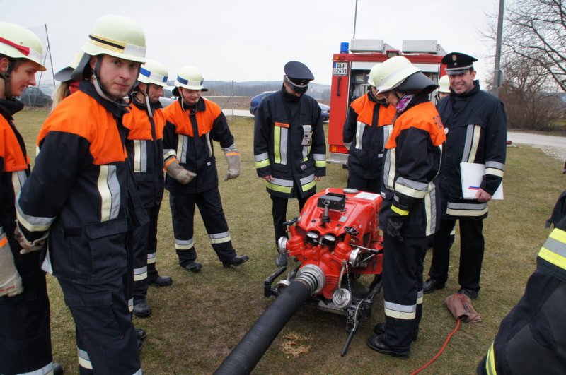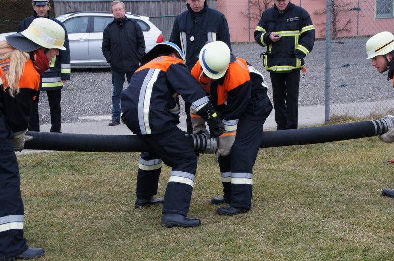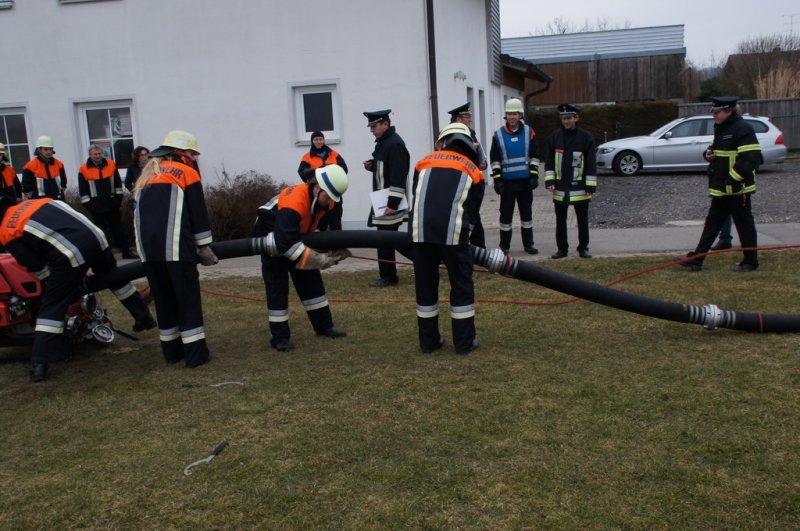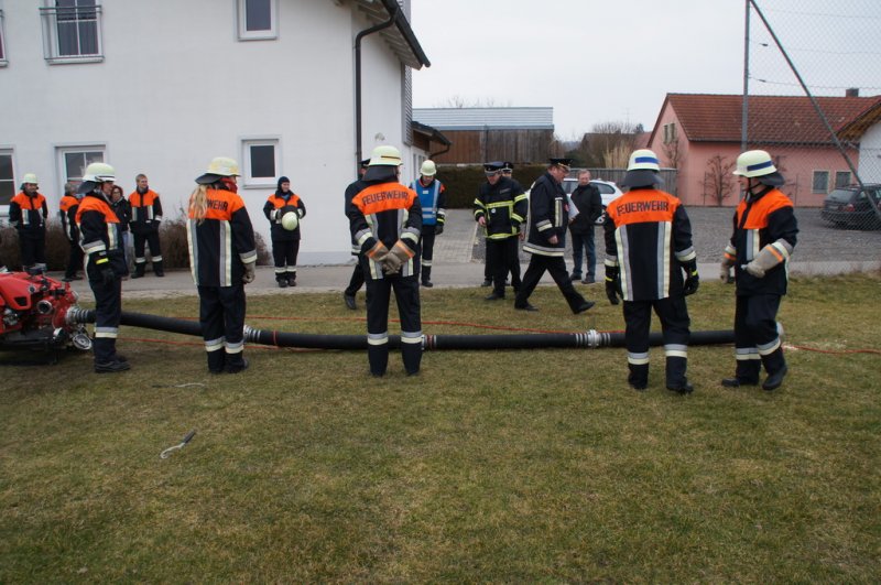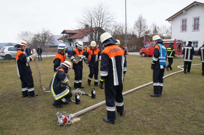 Am Samstag den 14.03.15 stellten sich 2 Löschgruppen der Wehr Aufhausen zur Leistungsprüfung „Die Gruppe im Löscheinsatz“. Nachdem in den vergangenen zwei Wochen die Feuerwehrler von Kommandant Markus Renner und der 1. Vorsitzenden Gabriele Renner in 6 Übungen darauf vorbereitet wurden. Das Schiedsrichterteam Kreisbrandinspektor Dionys Härtl, Kreisbrandmeister Max Schraufnagel und Schiedsrichter Christian Greiner stellten zunächst die Personalien der Gruppe fest und losten dann die Posten aus. Dann folgten die Lösung der Zusatzabgaben sowie das Anlegen der erforderlichen Knoten und Stiche im vorgegebenen Zeitrahmen. Anschließend wurden die Strahlrohrstrecken aufgebaut. Zu Letzt galt es eine Saugleitung zu kuppeln und mit der Trockensaugprobe deren Dichtheit zu bestätigen. Die Schiedsrichter bescheinigten der 57. Löschgruppe eine saubere Arbeit im vorgegebenen Zeitfenster und konnten der Gruppe zur bestandenen Prüfung gratulieren. Die Teilnehmer sind: Gruppenführer Armin Eisenreich (Stufe 6), Maschinistin Gabriele Renner (Stufe 6), Melder Moritz Obermeier (Stufe 3), Angriffstruppführerin Ilona Dullinger (Stufe 4), Angriffstruppmann Klaus Reithmaier (Stufe 3), Wassertruppführer Stefan Obermeier (Stufe 2), Wassertruppmann Michael Fuchsberger (Stufe 4), Schauchtruppführer Benedikt Renner (Stufe 3) und Schlauchtruppfrau Anja Kurz (Stufe 2).