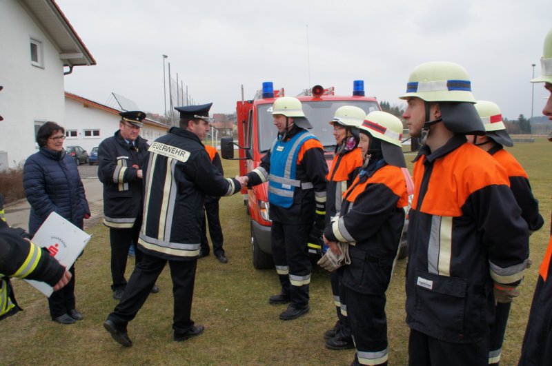 Bei der Verleihung der Leistungsabzeichen bedankte sich Kommandant Markus Renner bei den Prüflingen, dass sie sich wieder die Zeit zum Üben genommen haben. Auch Kreisbrandinspektor Dionys Härtl dankten den Teilnehmern und überreichte schließlich die Abzeichen. Auch die 2. Bürgermeisterin Frau Dr. Petra Loibl dankte in ihrem Grußwort den Feuerwehrlern für die aufgebrachte Zeit zum Wohl der Allgemeinheit und sprach auch lobend die hohe Frauenquote der Wehr Aufhausen an.