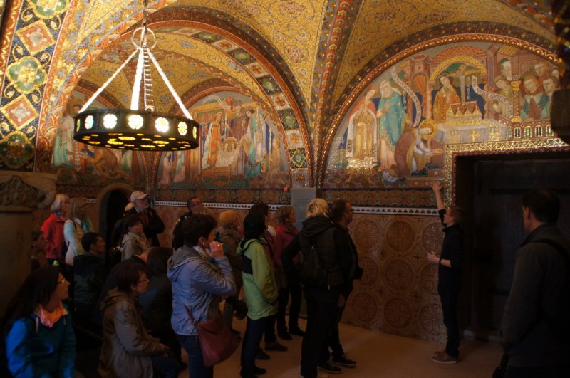 Am Samstag den 19.09.15 ging es schon zeitig, um 5 Uhr früh, mit einem voll besetztem Bus von Aufhausen aus los. Nach einer Frühstückspause steuerte man zuerst die Hohe Sonne in Eisenach an. Dies war der Startpunkt zur Wanderung durch die Drachenschlucht. Die Ausflugsteilnehmer zeigten sich von der bis zu 10 Meter hohen und nur ca. 60 cm breiten Klamm beeindruckt. Doch auch der Rest der Strecke durch die Buchen- und Eichenwälder des Thüringer Waldes war ein Erlebnis. Nach einem letzten steilen Aufstieg erreichte man gegen Mittag die Wartburg. Nach einer Pause wurde die, von den Ludowingern im 11. Jahrhundert erbaute Burg, mit Führer, besichtigt. Besonderes Interesse erregte hierbei natürlich die Kammer, in der Martin Luther verborgen wurde und die Bibel übersetzte. Nach dieser ausgedehnten Tour wurde mit dem Bus ins Hotel gefahren. Zum Abendessen ging es dann, per Pedes, in die Lutherstuben zum „Luthermahl“. In den von Kerzen erhellten Räumen wurde das Mittelalter wiederbelebt und die Ausflügler stillten ihren Durst mit Meet aus Füllhörnern, während ein Minnesänger, während des Essens, für Unterhaltung sorgte.