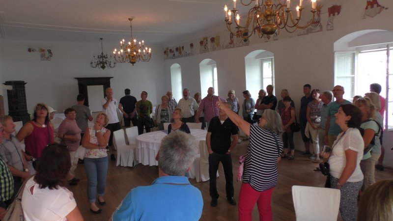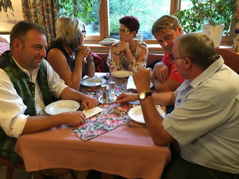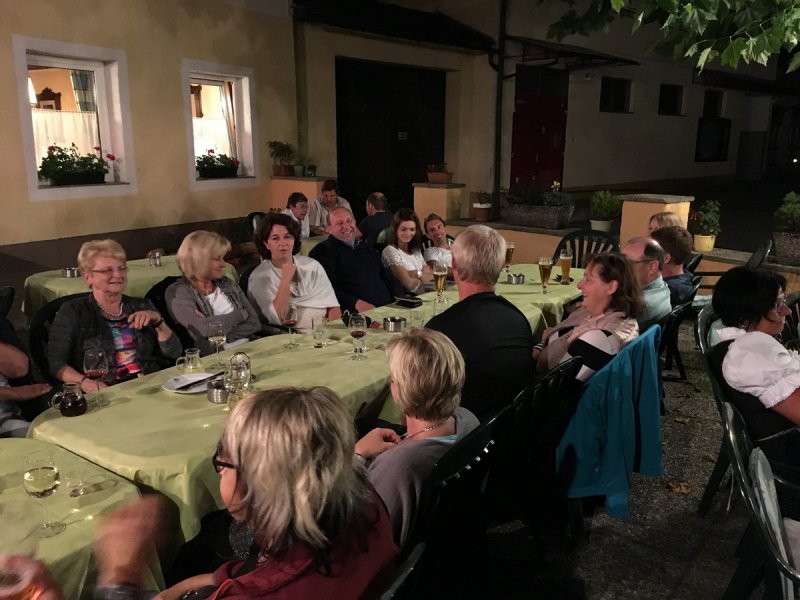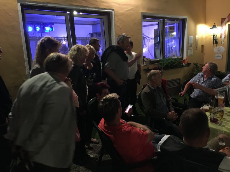 Nach dem Einchecken im Hotel ging es am Abend mit dem Bus nochmal los in den „Landgasthof in der Kreh“. Hier verbrachte man zusammen einen Grillabend, der von 2 jungen Burschen musikalisch mit Akkordeon und Gesang untermalt wurde.