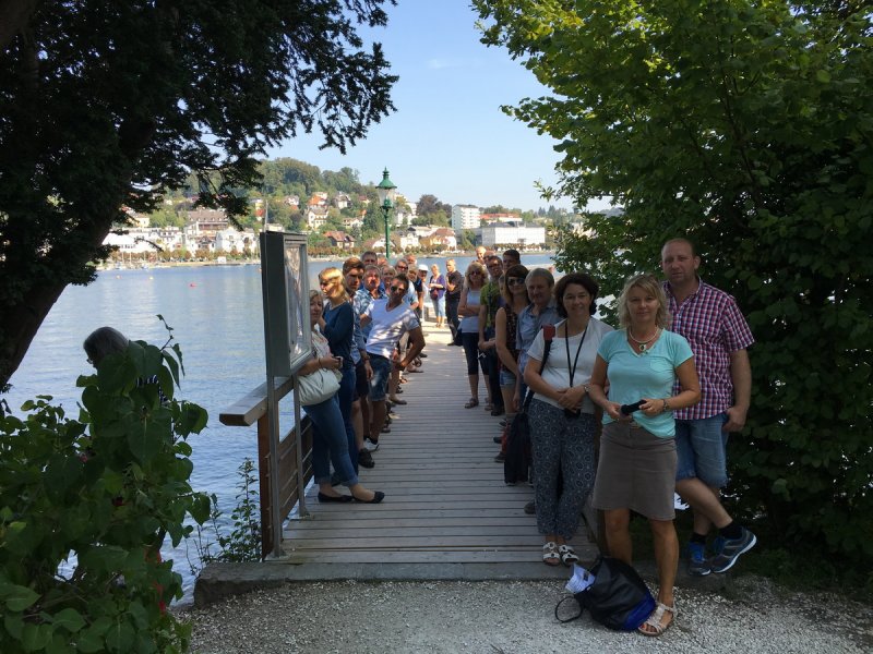 Am Sonntag ging es nach einem ausgiebigem Frühstück mit dem Bus zum Schloß Orth. Dieses wurde mit einer Führerin besichtigt und man erfuhr viel über die Geschichte des Schlosses und auch die Fernsehserie die hier gedreht wurde. Anschließend setzte man mit dem Schiff nach Gmunden über. Die Keramikstadt des Salzkammergutes wurde per Pedes mit 2 Führern besichtigt und man bestaunte unter anderem das fast 500 Jahre alte Rathaus. Nach der Führung blieb Zeit zur freien Verfügung, die man an der Uferpromenade oder in den anliegenden Cafés oder Gasthäusern verbrachte. Als letztes Highlight des Ausflugs folgte dann noch die Fahrt mit dem Schaufelraddampfer „Gisela“. Das 1871 gebaute Schiff brachte die Feuerwehrler wieder zurück nach Ebensee. Auf der Fahrt konnte man dem Maschinisten über die Schulter blicken und staunte über die Dampfmaschine die schon seit fast 150 Jahren ihren Dienst verrichtet.
