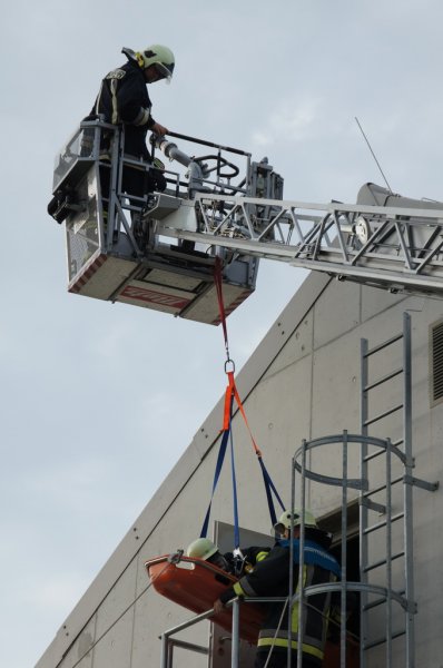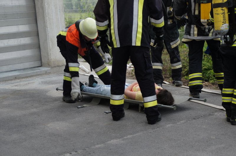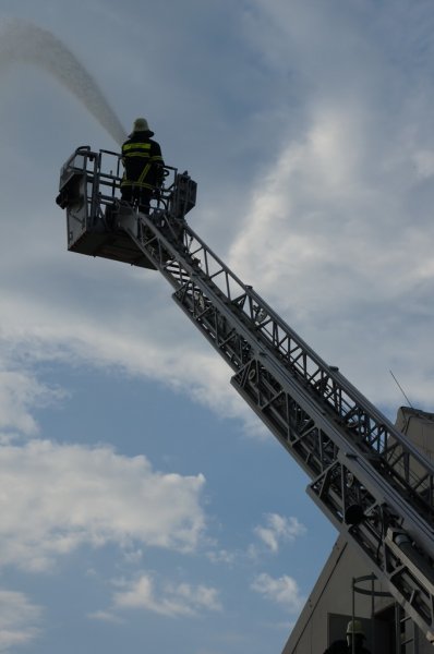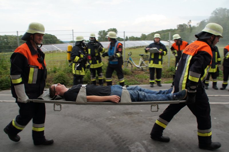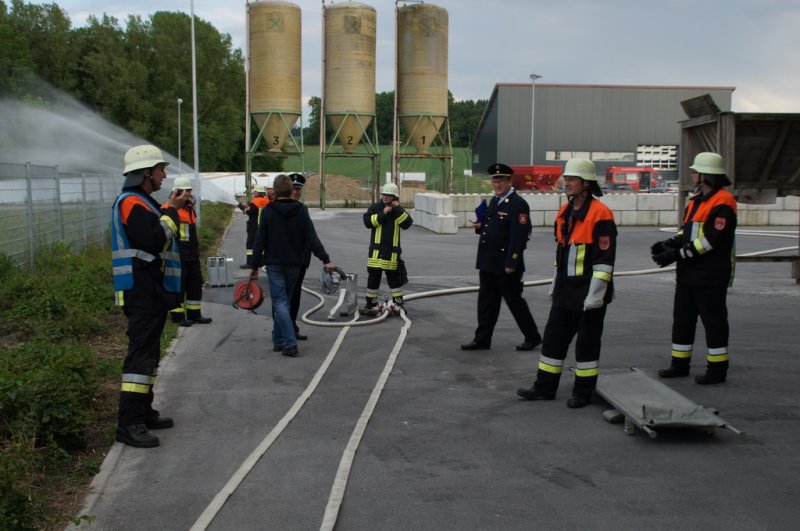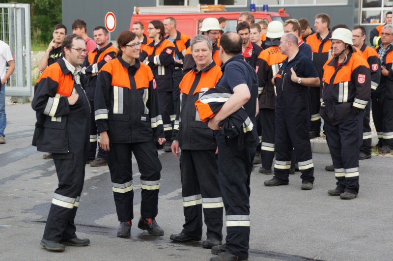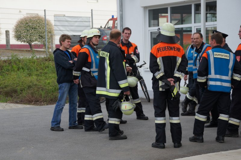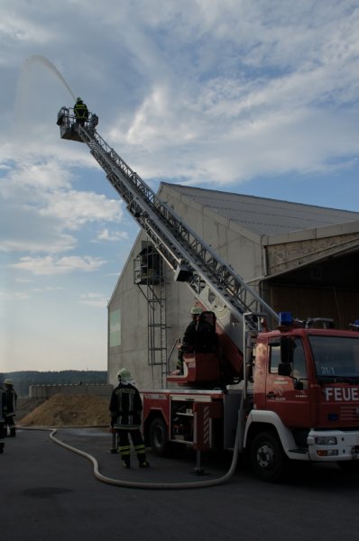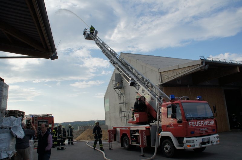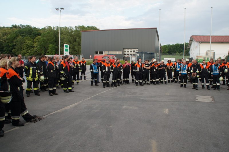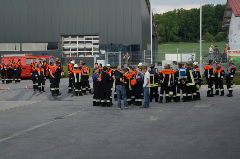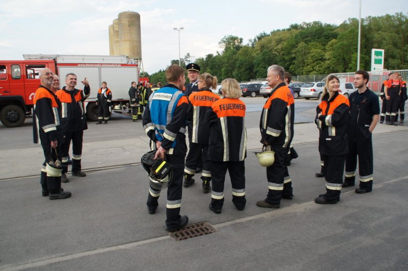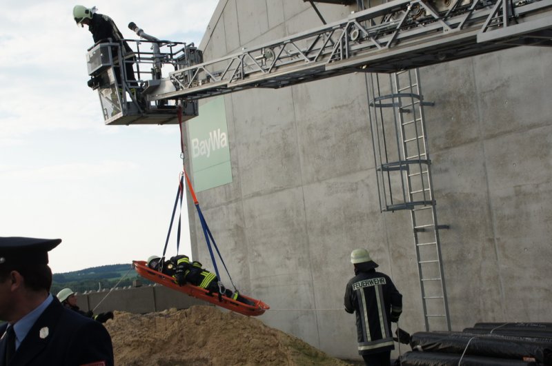 Am Dienstag den 03.06.14 fand eine Großübung auf dem Baywagelände in Aufhausen statt. Es wurde ein Brand in der Düngermittelhalle angenommen. 5 Personen wurden vermisst und eine Person war unter einem Gabelstapler eingeklemmt.