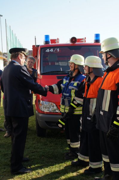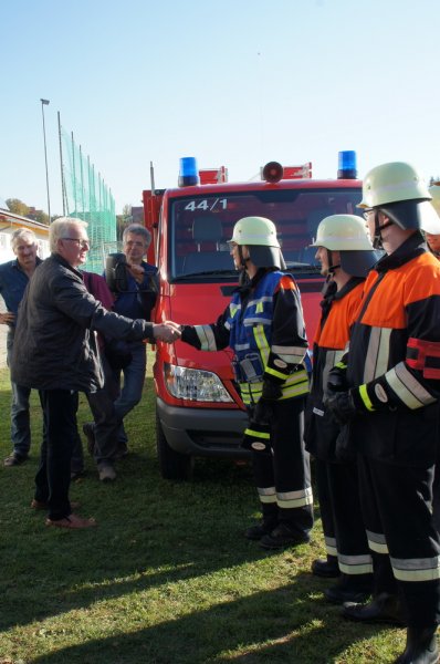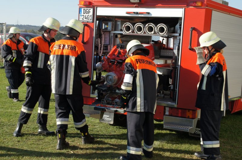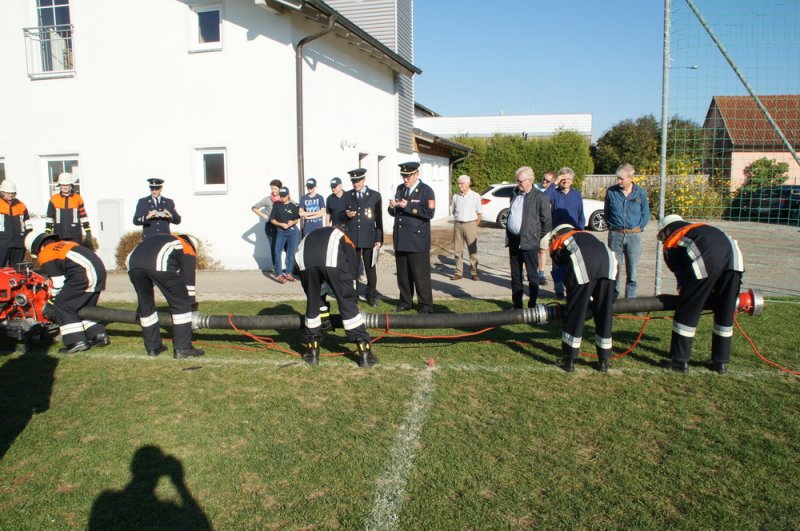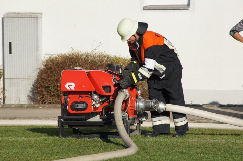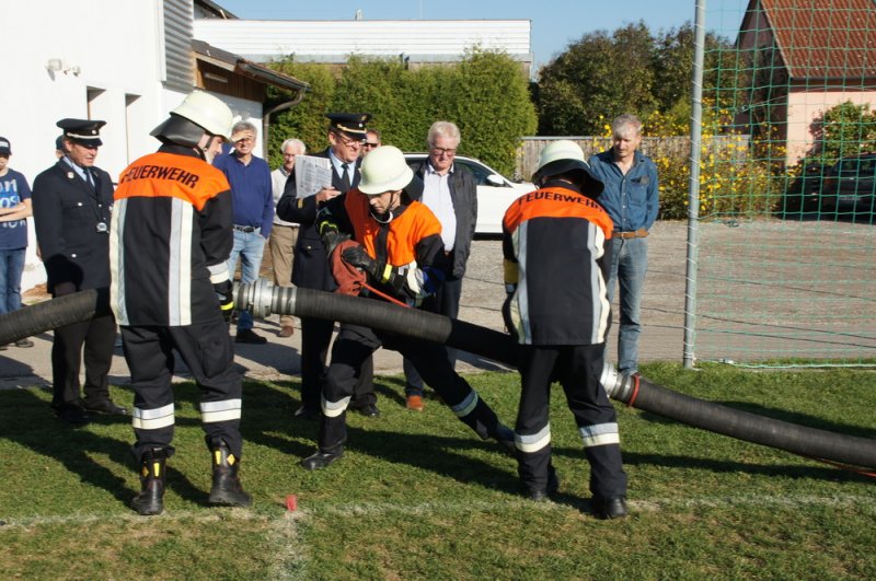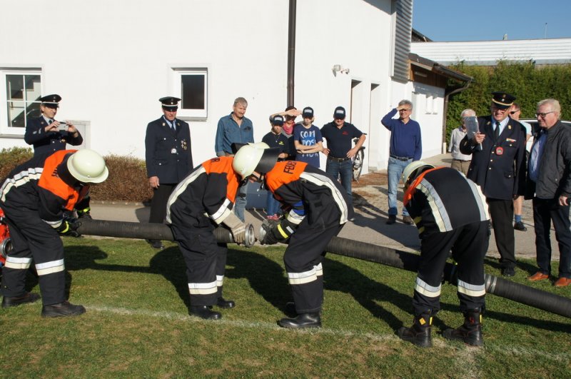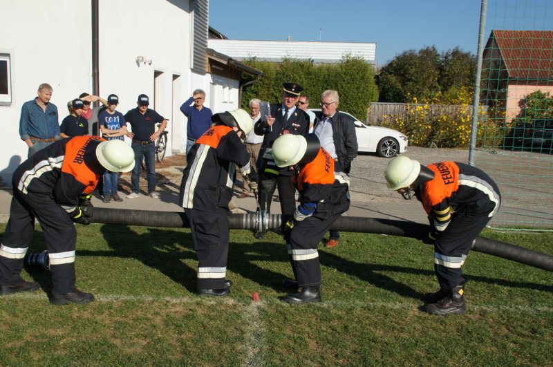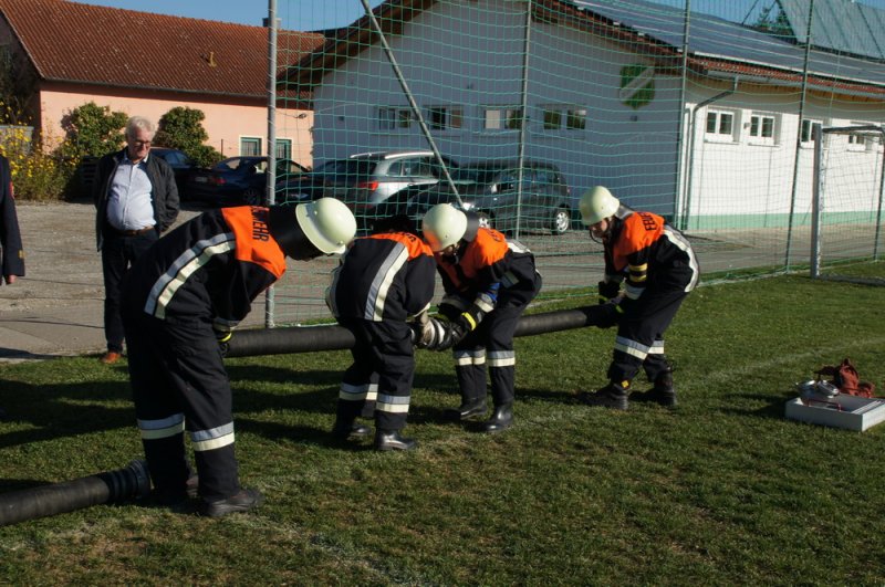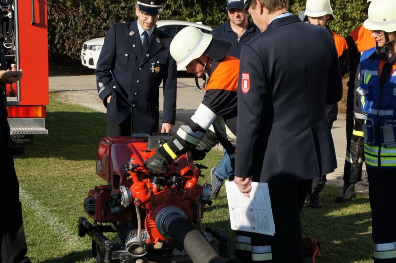 Zu guter Letzt stand noch das Kuppeln der Saugschläuche sowie die Trockensaugprobe auf dem Programm. Auch hier blieb die Truppe unter der Höchstzeit. Schließlich konnte KBI Härtl der Gruppe zur bestandenen Prüfung gratulieren. Bei der Besprechung kamen 2 kleine Flüchtigkeitsfehler zu Tage ansonsten war der ganze Ablauf ohne Fehler.